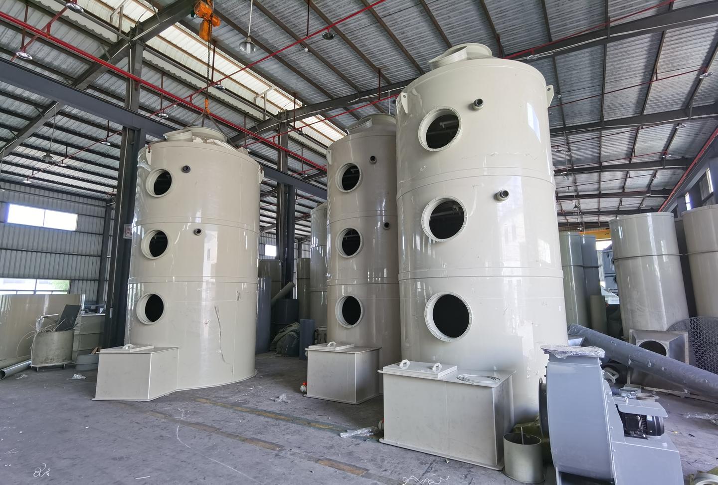 一種常見的噴涂車間廢氣處理方法是利用噴淋塔進行處理。噴淋塔也被稱為噴霧塔或洗滌塔,是一種常見的氣液分離設備,主要用于處理污染物濃度較低的廢氣。具體來說,噴淋塔是通過將廢氣帶入塔體內部,并噴撒水或其它溶液,在氣液接觸的過程中將有害物質溶解或吸附到水中,從而實現廢氣凈化的目的。
