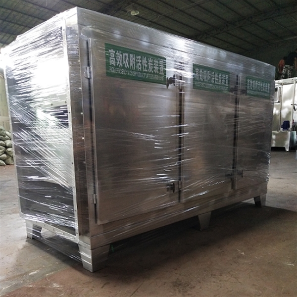 有機(jī)廢氣吸附箱,或者叫活性炭吸附裝置,由廣東久藍(lán)環(huán)保制造的活性炭吸附箱,處理風(fēng)量20000m3/h,制作材質(zhì)不銹鋼201,規(guī)格為2450*1015*1480mm,法蘭尺寸830*1170mm,可以裝載炭量為:顆粒炭14包,蜂窩炭540個(gè)。也可以根據(jù)用戶的需求進(jìn)行定制。